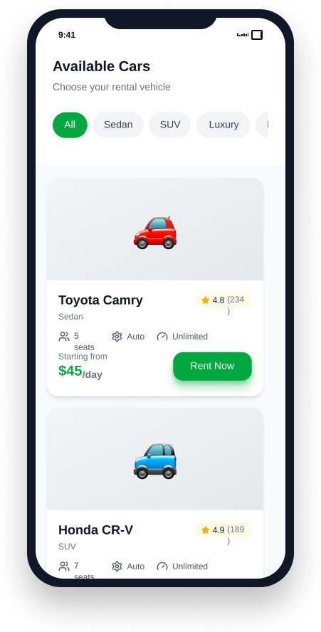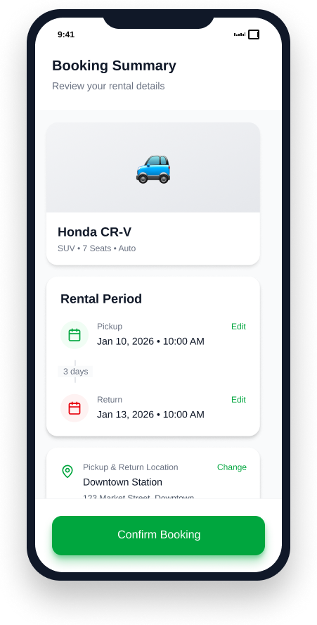 From vehicle inventory to customer bookings, manage every aspect of your car rental business with ease.