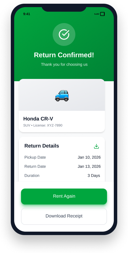From browsing available cars to completing your rental – see the full customer journey